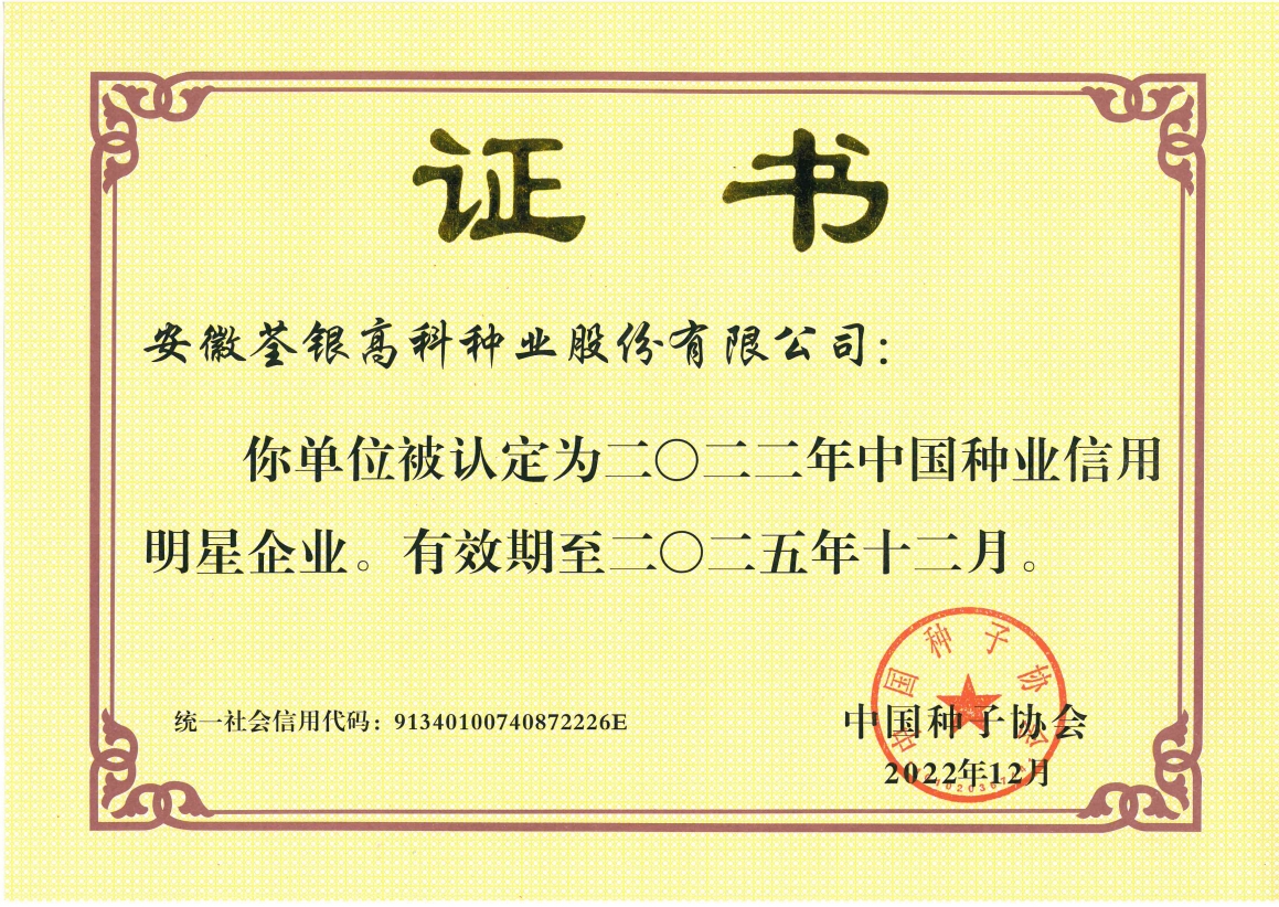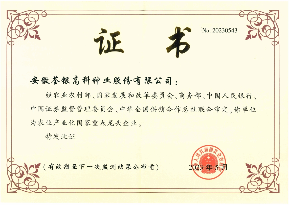 安徽荃銀高科種業(yè)股份有限公司是一家“以種業(yè)為核心、農業(yè)服務為延伸、探索和創(chuàng)新農業(yè)多元化發(fā)展”的現代高科技種業(yè)上市公司,證券代碼:300087。公司注冊資金9.47億元,系“中國種業(yè)領軍企業(yè)、農業(yè)產業(yè)化國家重點龍頭企業(yè)、國家高新技術企業(yè)、農業(yè)部首批農作物種子育繁推一體化企業(yè)、中國種業(yè)信用明星企業(yè)"。在國內控股子公司20多家,在國外設立分支機構4家,良種銷售至全國20多個?。ㄊ?、區(qū)),出口覆蓋20多個國家與地區(qū),種業(yè)綜合實力、雜交水稻研發(fā)、推廣及海外業(yè)務規(guī)模均居全國種子企業(yè)前2位。